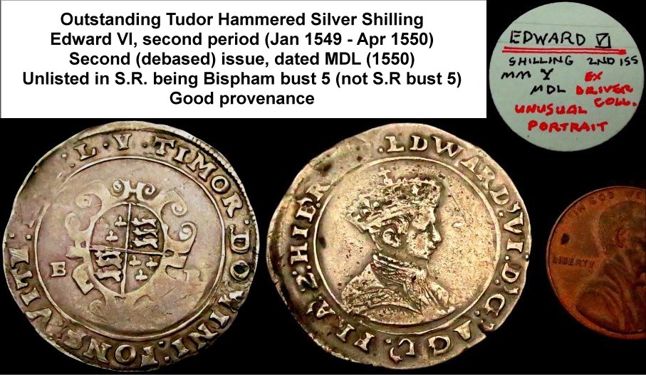 Outstanding Edward VI Hammered Silver Shilling. Second period (January 1549 to April 1550), second
