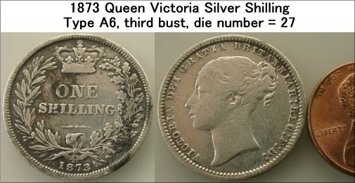 WV-4844: 1873 Queen Victoria Shilling. Silver. £15