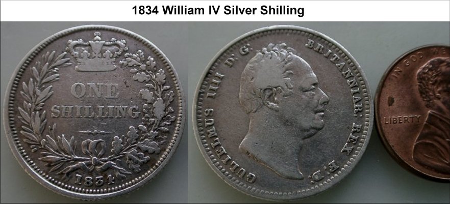 WV-5497: 1834 William IV Silver Shilling. Nice grade. £36