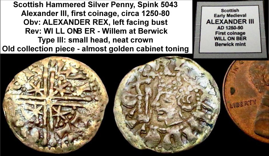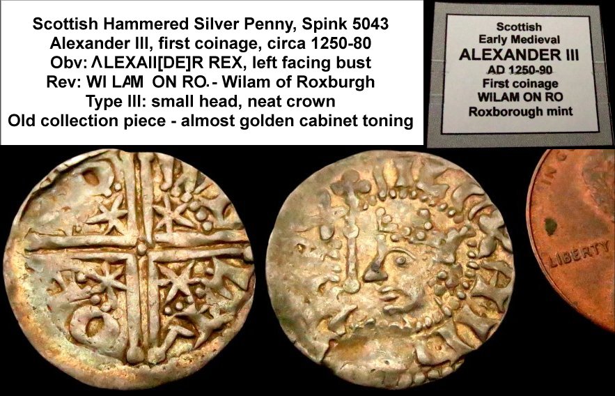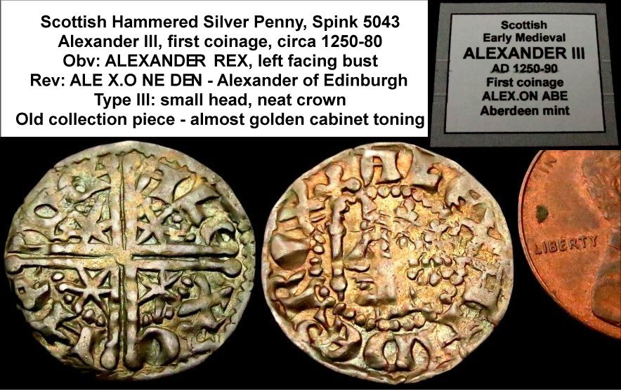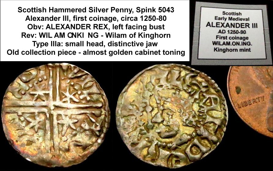 Hammered Silver Scottish Penny. First coinage, long cross and
