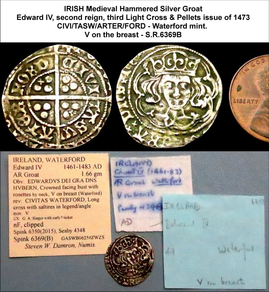 third Light Cross & Pellets coinage of 1473 only. CIVITAS WATERFORD - Waterford mint.