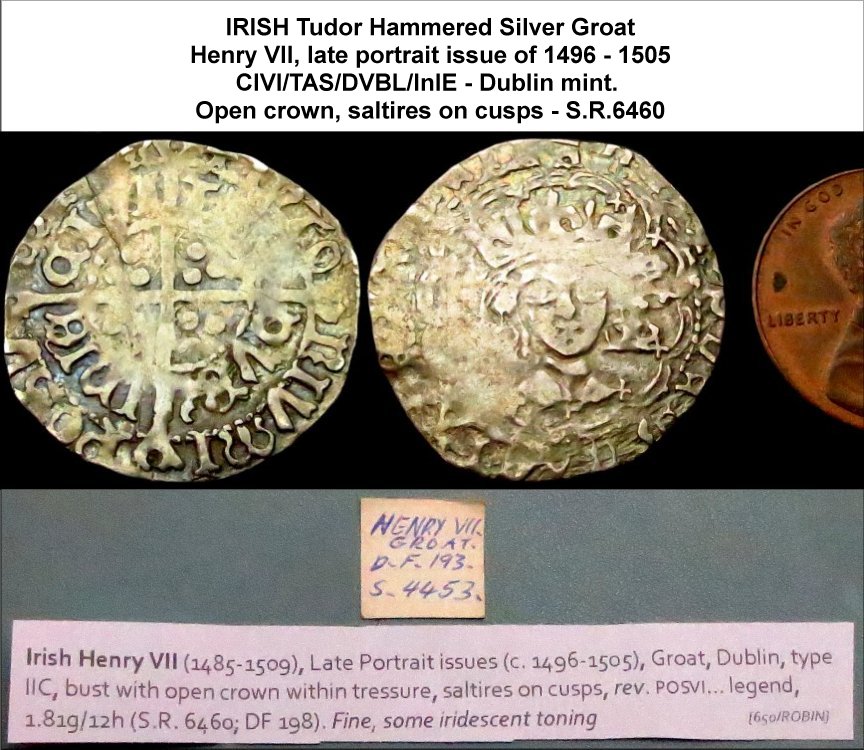 Henry VII Hammered Silver Tudor Groat. Late portrait issues of 1496-1505. CIVITAS DVBLInIE