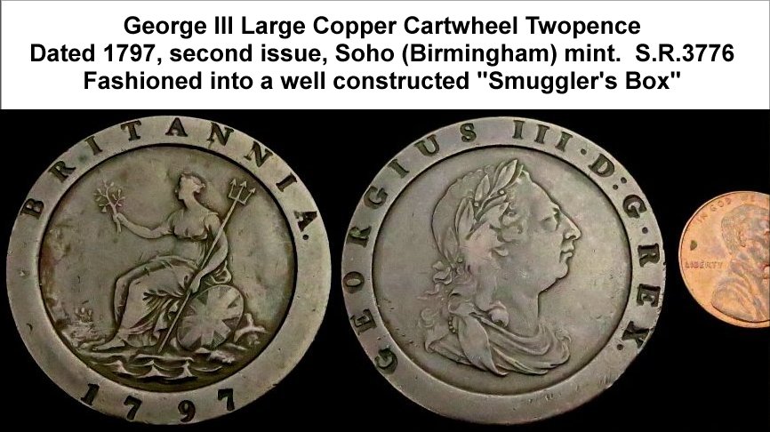 Cartwheel Twopence SMUGGLER'S BOX. Second issue, Matthew Boulton's Soho (Birmingham) mint, S.R. 3776. At first glance, a