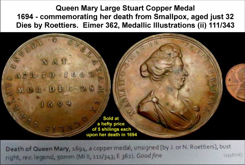William III), right; reverse: dates of Mary's birth and death, showing she was