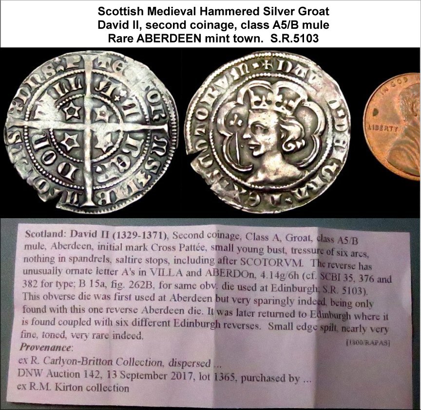 rarity: an illustration as to the infinitesimally small output of Aberdeen groats compared to Edinburgh groats under David II